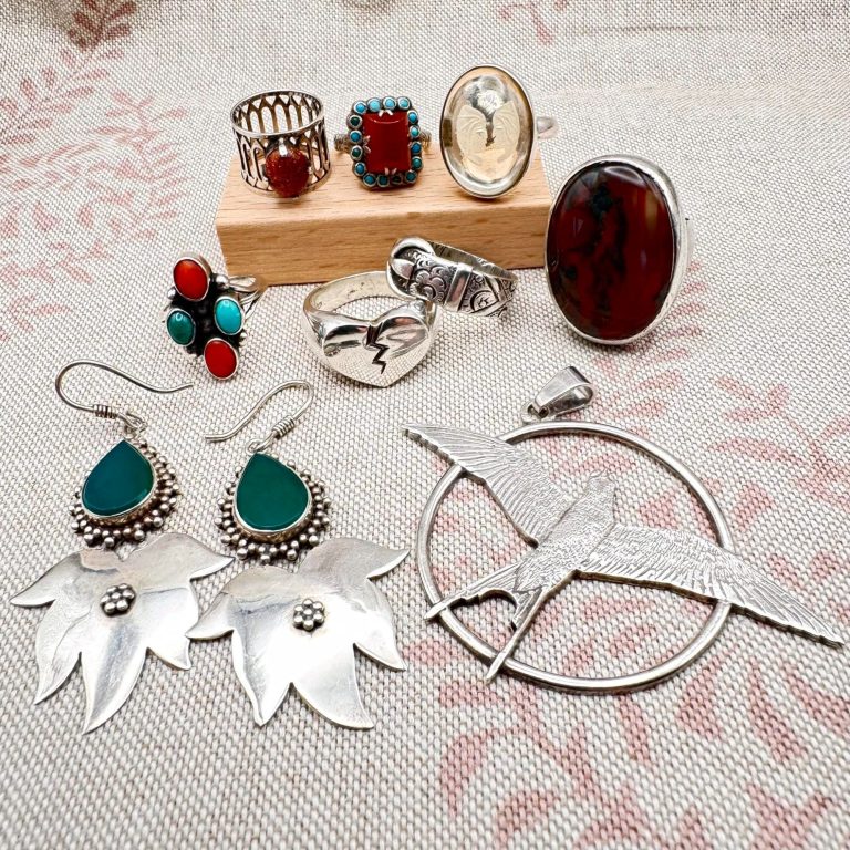 Whether you’re drawn to bold statement necklaces or delicate studs, you’ll find something beautifully unique – often incorporating genuine vintage fabrics alongside contemporary materials.